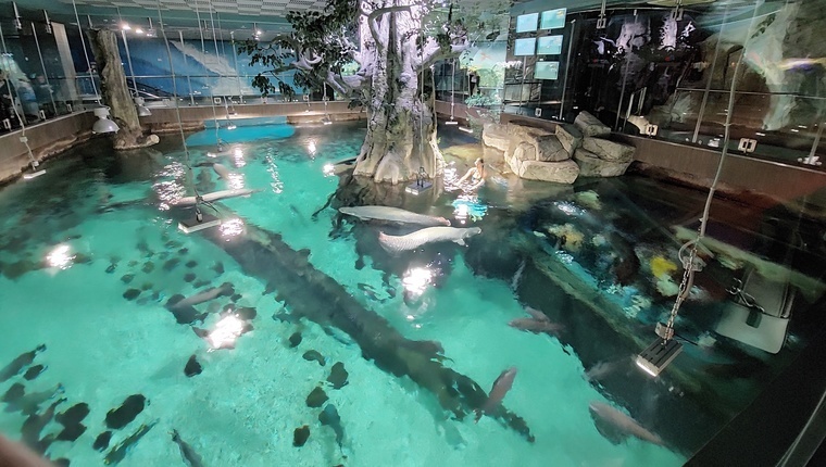 Вы увидите самый крупный аквариум Европы, который вмещает 5 млн. литров воды, 80 аквариумов, 7000 разнообразных рыб и морских животных, интерактивную детскую зону, тачпул с морскими звездами, карпами и скатами.