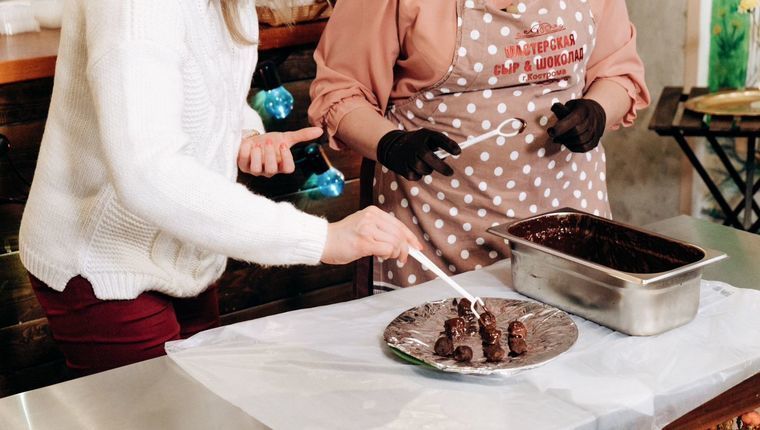 На мастер-классе вы не просто приготовите два десерта из качественного бельгийского шоколада, а фактически пройдете путь открытия техники изготовления корпусных конфет, узнаете, почему американский десерт кейк попс (круглое пирожное на палочке) имеет костромское происхождение.