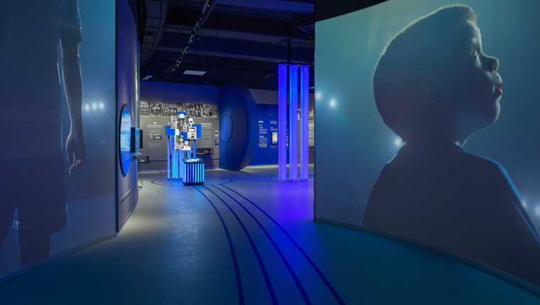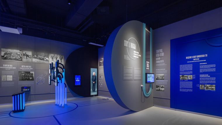 Зона «Стадион» с масштабным анимированным макетом, где можно понаблюдать за эволюцией стадиона «Динамо» во время красочной демонстрации.