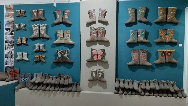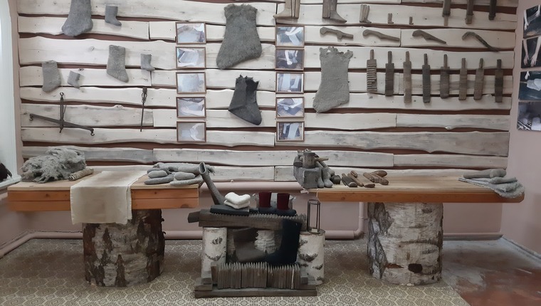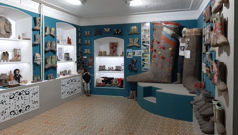В музее вас познакомят со старинной технологией изготовления исконно русских валенок. Вы увидите самые разнообразные валенки, расшитые бусинами, бисером, тесьмой, пайетками, мехом, стразами, кружевом. Здесь представлены выставочные экспонаты, в числе которых различного размера валенки, шахматные фигурки, старинное оборудование для изготовления валяных изделий. Посетители имеют возможность ознакомиться с технологией и процессом изготовления изделий.