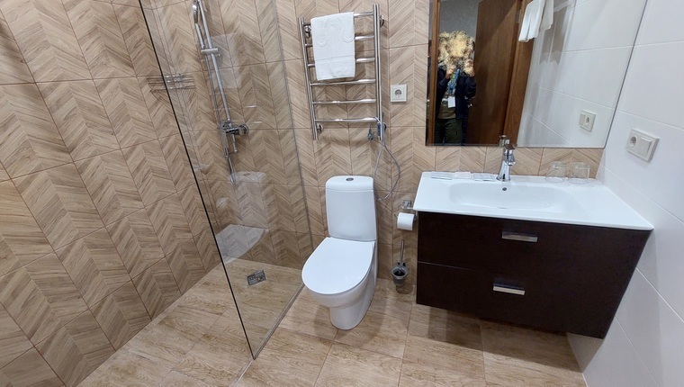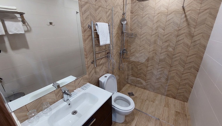 - Санузел (с душем, тапочки, туалетные принадлежности, фен, халат)