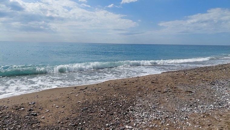 Городской галечный пляж расположен в 30 метрах от пансионата.