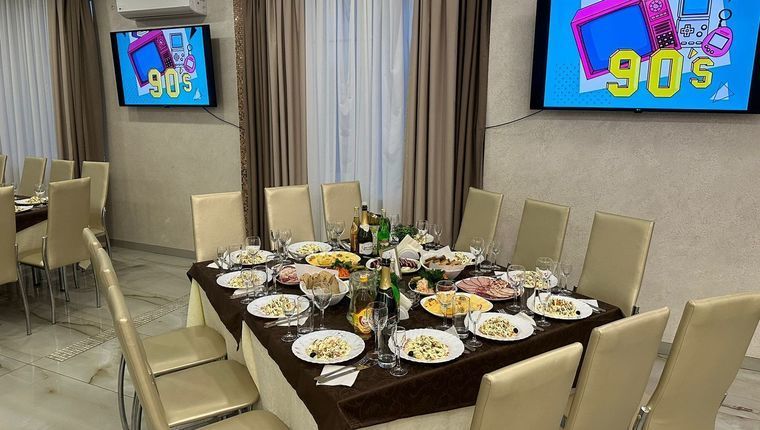 Наше мероприятие будет проходить в большом банкетном зале с блюдами того времени, хмельными напитками, прямиком из Советского союза! Вас ждет полное погружение в 80-е и 90-е!