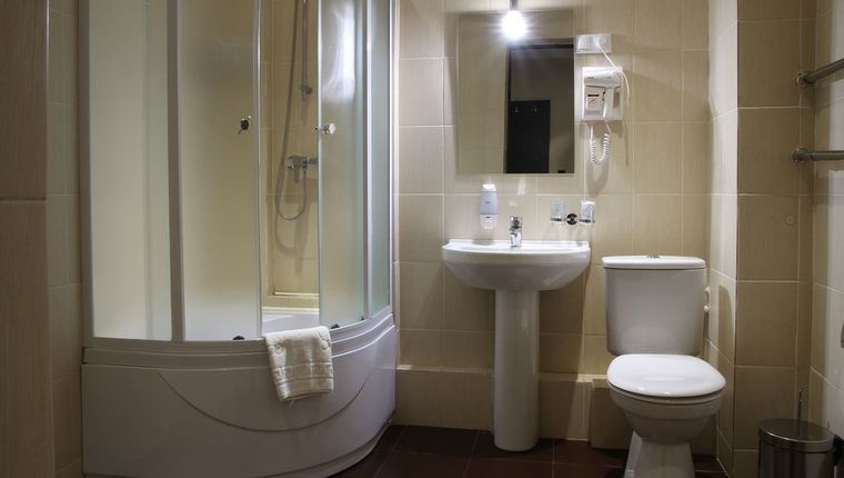 В ванной комнате: душевая кабина, фен, полотенца, гигиенические наборы (одноразовый шампунь и гель для душа)