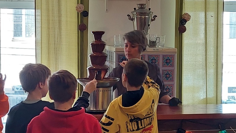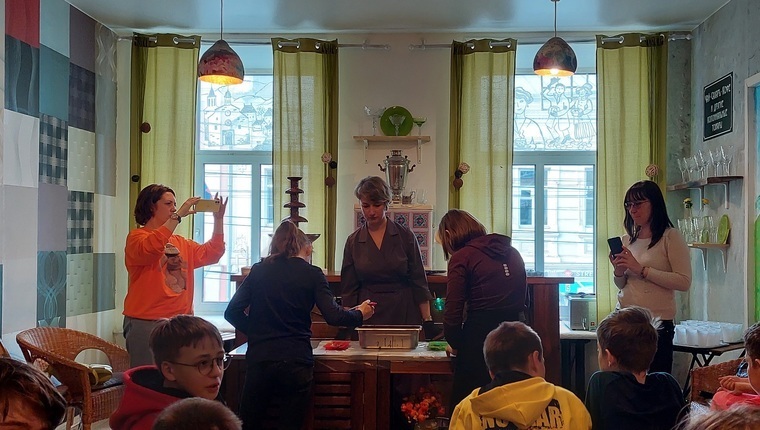 Мастер-класс проводится в стилизованной кондитерской, где впервые в XIX веке делали костромской шоколад под руководством мастера-итальянца, выходца с московской фабрики купца Абрикосова.