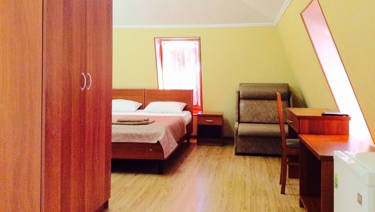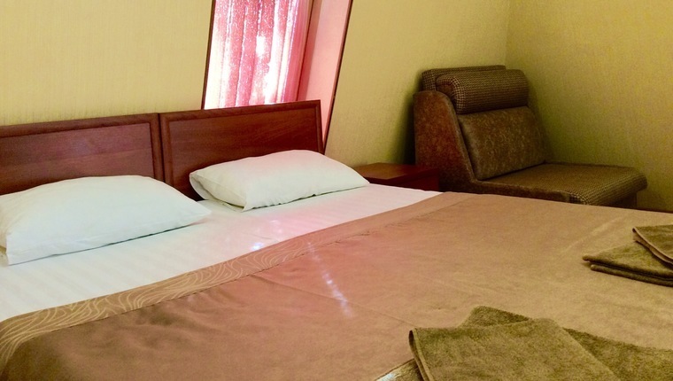 Номерной фонд: 2-х местные, 3-х местные номера: санузел с душем, кондиционер, холодильник, телевизор, полотенца, мыло, туалетная бумага.