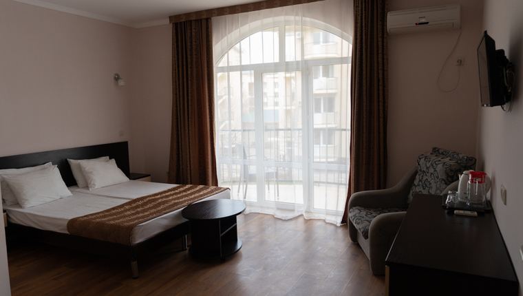 Замечательный песчаный пляж находится в полукилометре от отеля, что позволяет наслаждаться теплыми водами Черного моря в любое время. На берегу можно пользоваться зонтами, шезлонгами, навесами и другими удобствами.