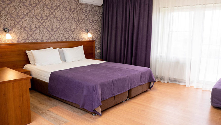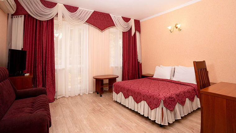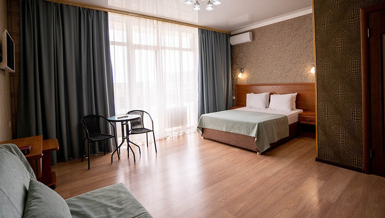 Также, есть номера следующих категорий - "Стандарт" (2 чел. + 1 доп.), "Полулюкс" (макс. 2+2), "Люкс" (макс. 2+2), "Апартаменты-студия" (макс. 2+2)
