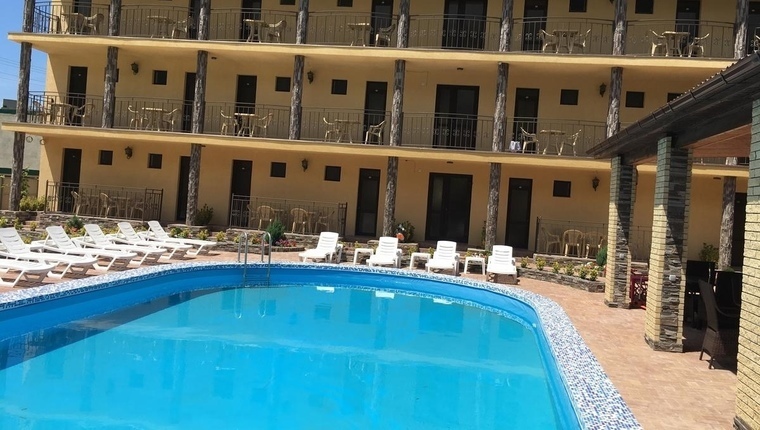На территории гостевого дома имеется большая дворовая зелёная территория, на которой расположен бассейн (6•12 метров), оборудованный шезлонгами и всем необходимым для комфортабельного отдыха.