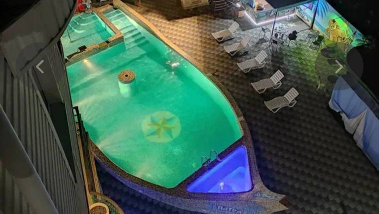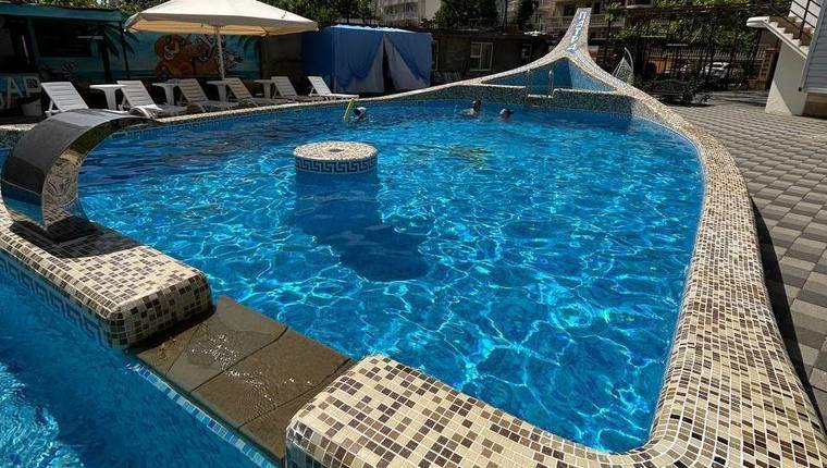 • бассейн с тремя отделениями: «детский» (глубина до 60см), «общий» (глубина до 190см, ширина 7м, длина 18м), «джакузи»;