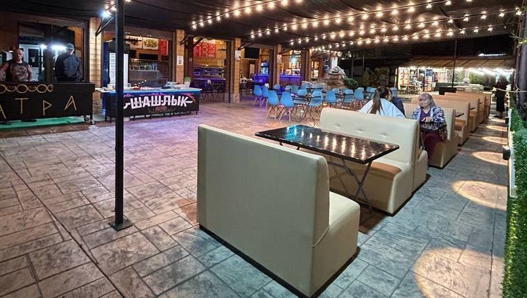 На территории находятся кафе Патра и летнее кафе с зоной барбекю