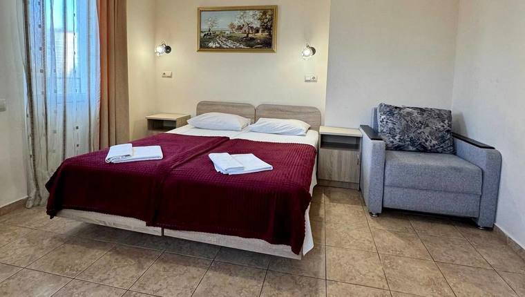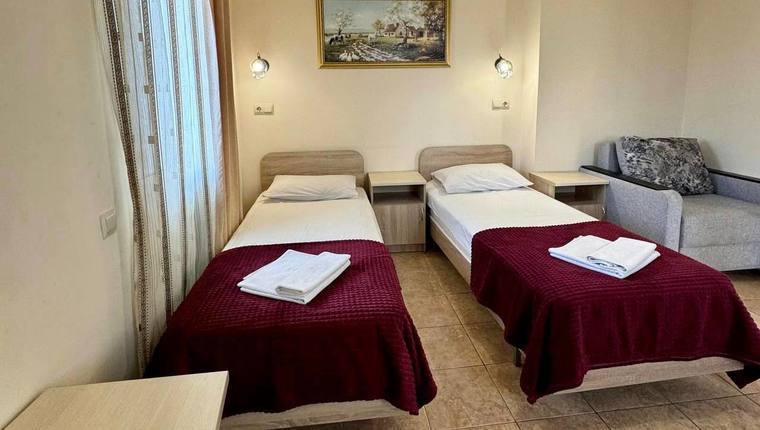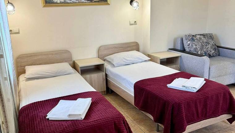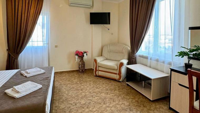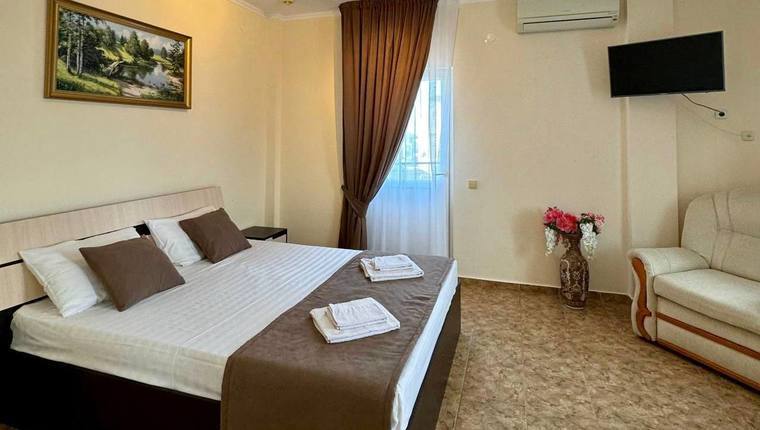 Во всех номерах, независимо от категории, предусмотрено все для удобного и спокойного отдыха наших гостей. В каждом номере хорошая мебель, телевизор, холодильник, кондиционер, балкон, санузел, оснащенный душевой кабиной, феном и всеми необходимыми расходными материалами.