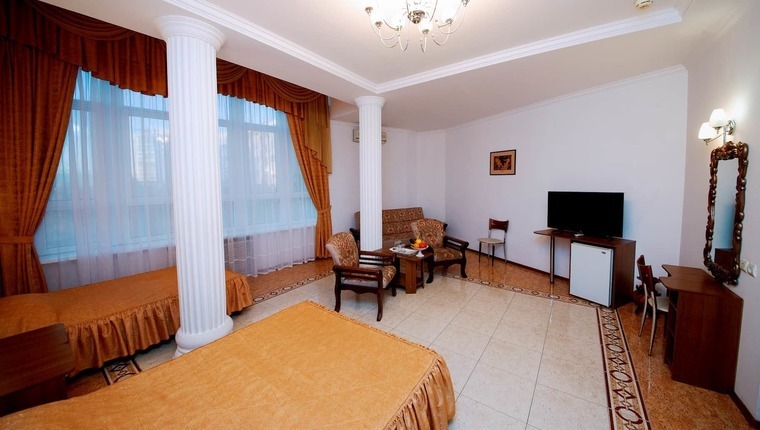 Все номера с удобствами. Оснащены всем необходимым для комфортного проживания гостей - ТВ, холодильник, кондиционер, фен и прочее