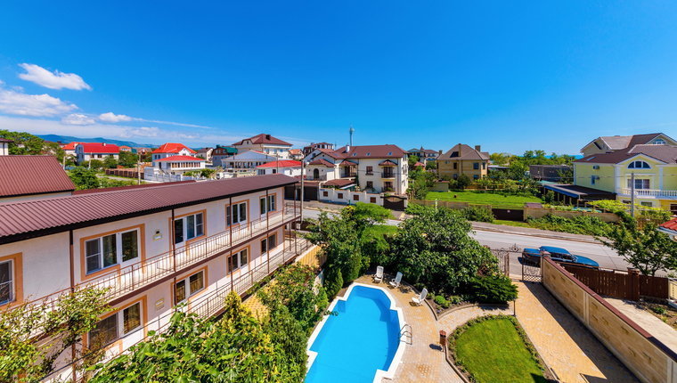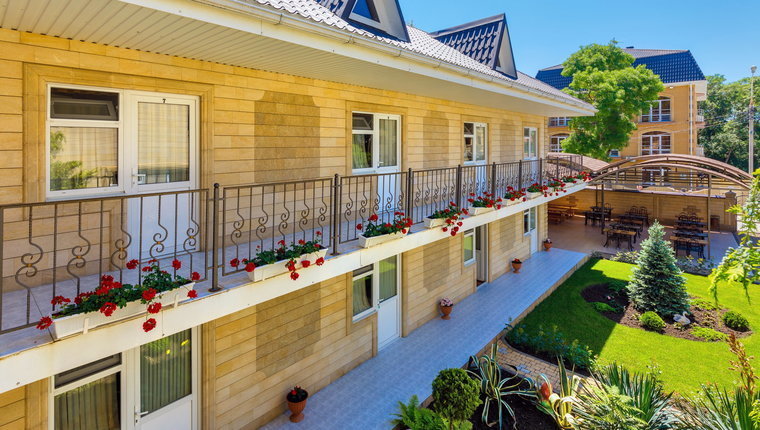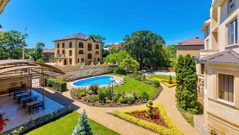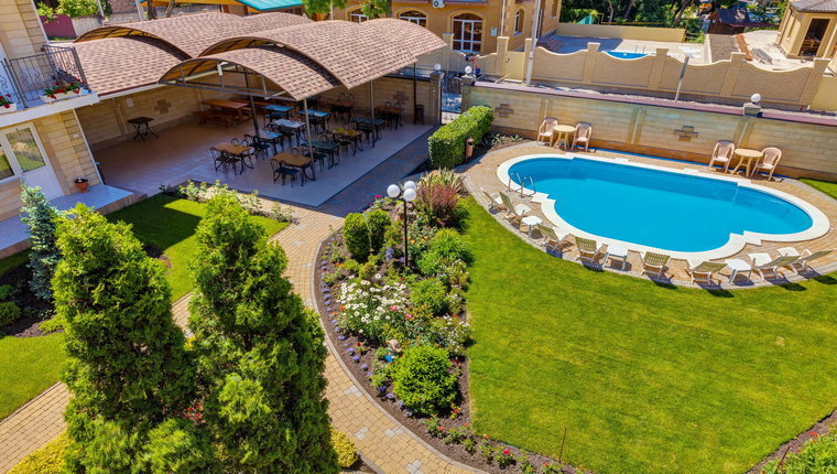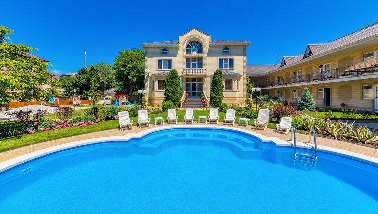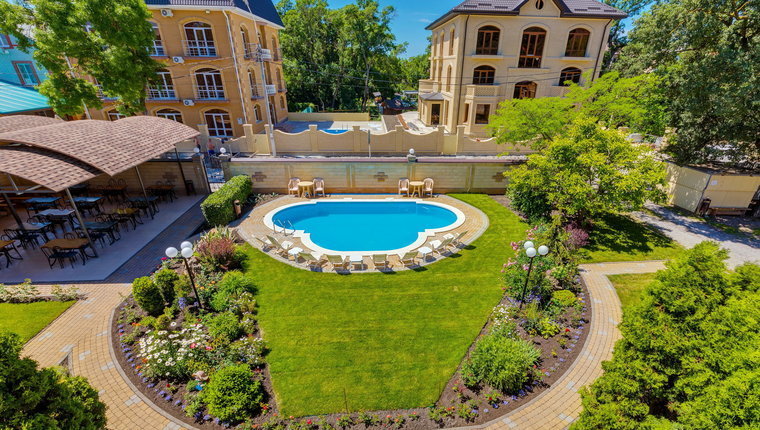 Гостевой дом состоит из трех корпусов, на территории каждого корпуса имеется бассейн.