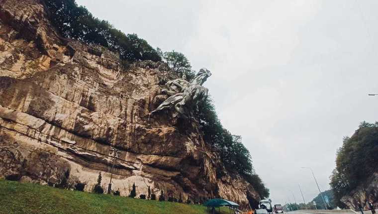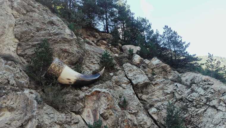 Многие помнят эту цитату из великолепной советской комедии - в некоторых кадрах упомянутого фильма можно увидеть тот самый старинный рог. Теперь этот предмет, многократно увеличенный, украшает одну из скал прекрасной горной страны!