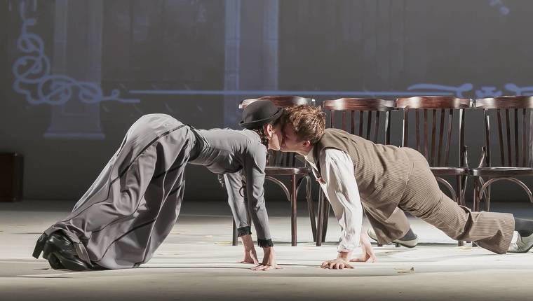 Как скорый поезд, проносятся события и колоритные портреты из чеховских рассказов. Кисейные шляпки, ажурные перчатки, платья с кринолинами и светлые сюртуки - короткие истории – комедийные происшествия сменяют друг друга. Каждая история врывается в другую историю, органично даёт бодрую энергию следующей. Калейдоскоп человеческих страстей, столкновений, абсурдных ситуаций, неосуществленных замыслов оборачивается фантасмагорией "веселого" Чехова, энергией его театральности, чередой актерских бенефисов.
