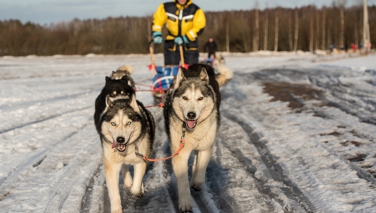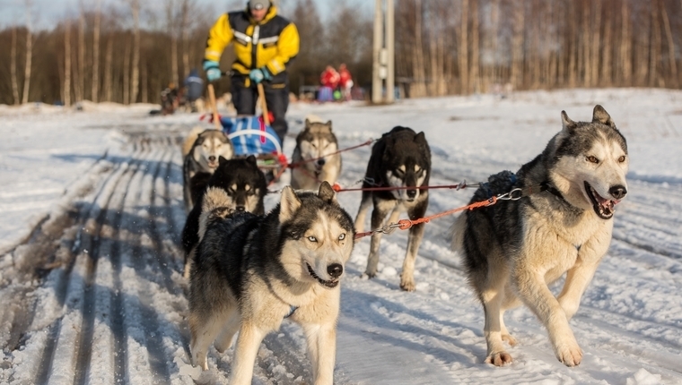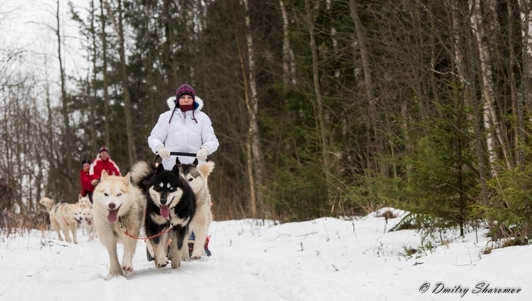 - Катание на упряжках с хаски