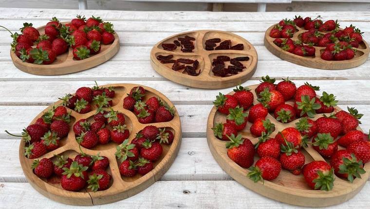 Вы сможете преобрести рассаду клубники разных сортов и продукцию сладостей из Клубники (12 вкусов варенья и алкогольных джемов,клубничной пастилы, маршмелоу, клубничных трюфелей, фрипсов, мороженного и тд.) Всё полезно и натурально