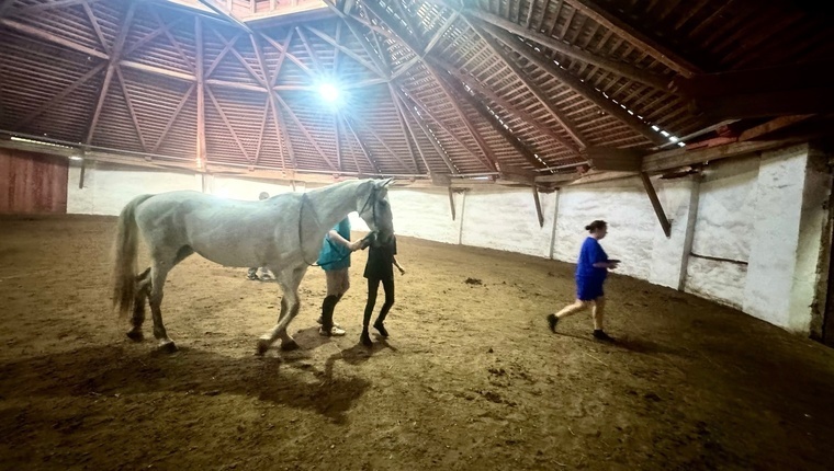 Вас ждет встреча с удивительными орловскими рысаками в конюшне 19 века с уникальным крытым манежем. Мы прокатим Вас в санях с ветерком по заснеженным дорожкам. Самых смелых- научим держаться в седле. По традиции угостим чаем из самовара на еловых шишках с медом Костромского разнотравья. Проведем мастер- класс по росписи елочной игрушки - лошадки . А Дед Мороз и Снегурочка подарят Вам ощущение детства и сказочного волшебства.
