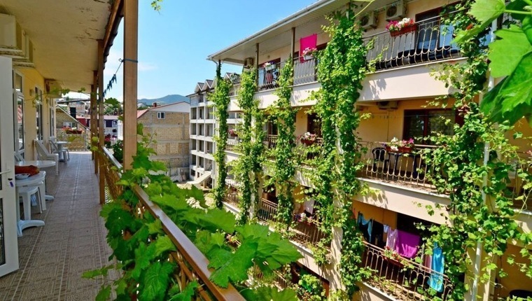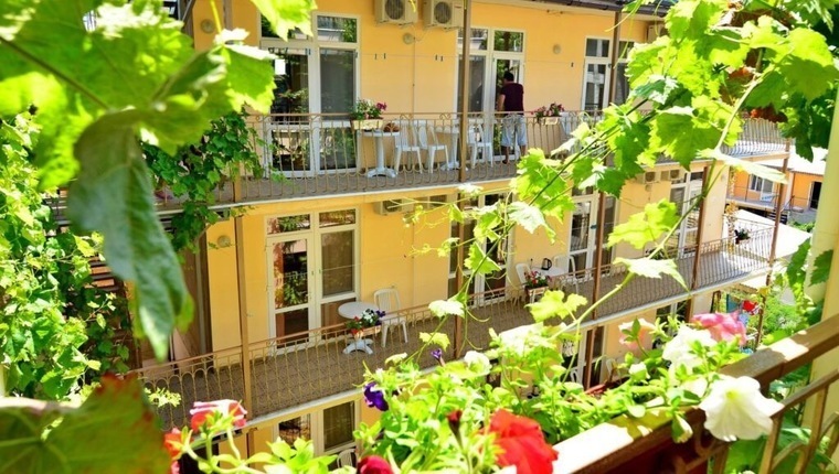 Вас ждёт: уютный, тенистый внутренний дворик отеля, атмосферная зона отдыха и приема пищи, завораживающий вид на горы, свежий морской воздух и особенное настроение курортного города.