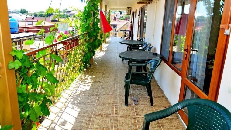 Терраса рядом с номером оборудована столиком со стульями. На окнах антимаскитные сетки. Уборка номера, смена белья и полотенец - каждые три, пять дней.