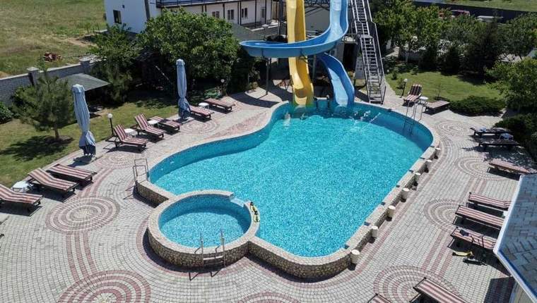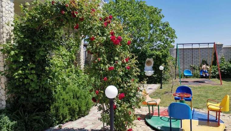 Гостевой дом Новоотрадного «Альбатрос» представляет собой, большую территорию, окруженную зелеными газонами с клумбами цветов, фонтаном, летней площадкой и бассеёном с водными горками, двухэтажный корпус для размещения проживающих в просторных и уютных 2-х, 3-х , 4-х, 5-и и 6-тиместных комнатах.