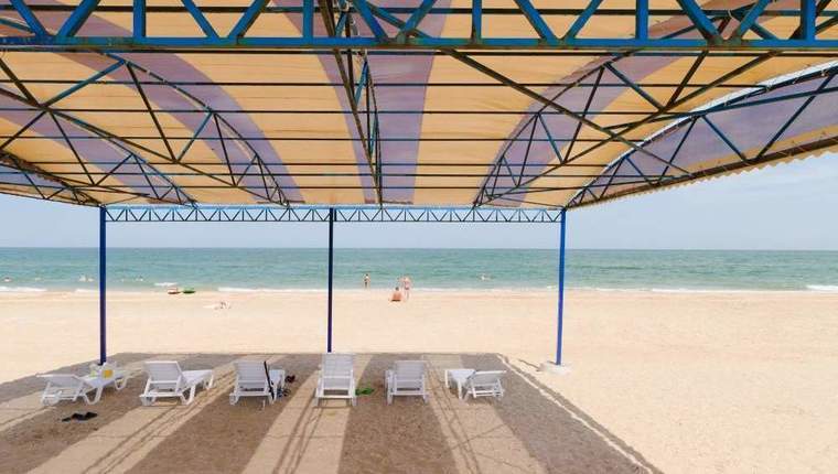 • собственный песчаный пляж длиной 10 км, оборудованный зонтами, навесом и шезлонгами - 5 минут ходьбы