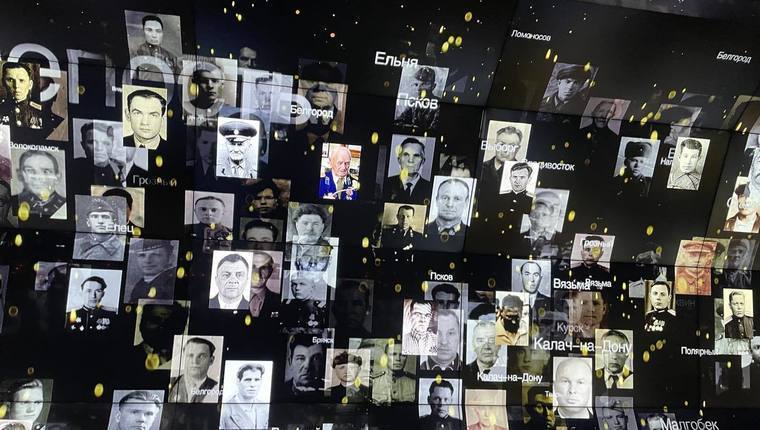 На больших экранах представлено бесконечное панно из фотографий героев Великой Отечественной войны. Фронтовики и партизаны, жители блокадного Ленинграда и труженики тыла – все те, кто, как один, встал на защиту Родины. Это самая большая «база памяти» героев, которая пополняется ежедневно - больше 30 миллионов имен и фотографий!
