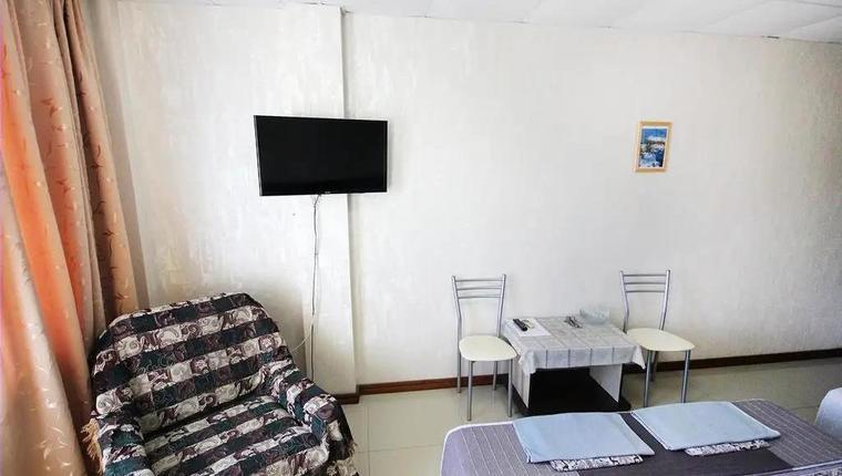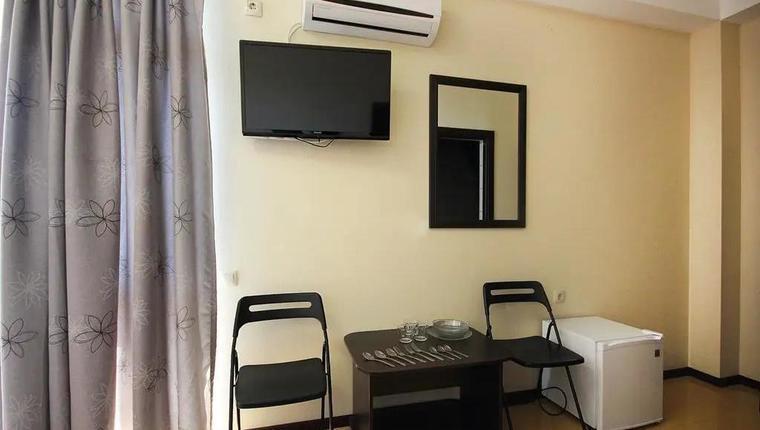 • спутниковое телевидение, сплит-система (кондиционер), шкаф для белья, журнальный столик, телевизор, душ, туалет, полотенцесушитель, холодильник, чайник.