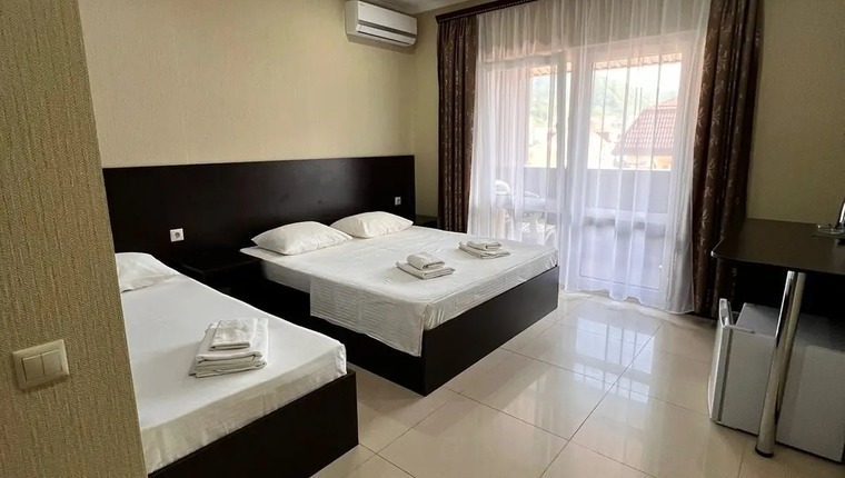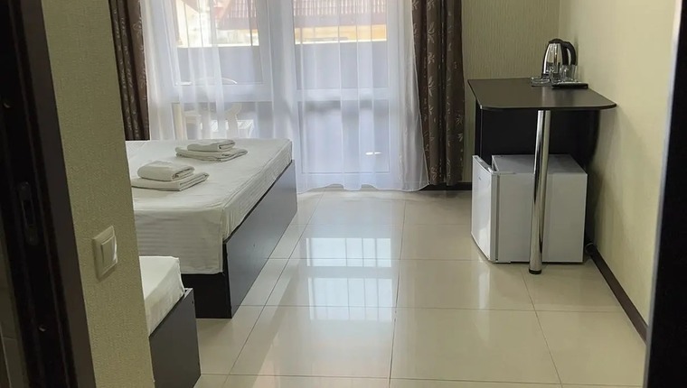 Гостиница располагается практически в центре поселка. Пешком до центрального пляжа можно дойти за 15 минут.