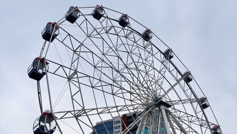 Высота колеса обозрения в Нижнем Новгороде — 50 метров. Полный оборот оно совершает за 8 минут. Благодаря особенностям рельефа механизм поднимает посетителей на гораздо большую высоту — 120 метров над уровнем моря: дух захватывает. С высокого берега Волги открывается чудесный вид на реку, парк Победы с выставкой военной техники, трамплинный комплекс, Вознесенский Печерский монастырь, канатную дорогу, другой берег.
