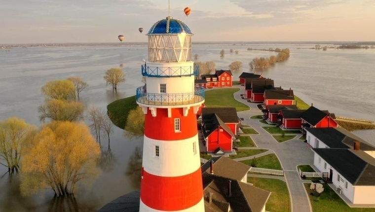 Вы сможете взобраться на маяк и обозреть рязанские просторы с высоты, сделать колоритные фотографии в скандинавском духе! Вокруг маяка заливные луга. Восхитительно смотрится с высоты сама рыбацкая деревня, а так же остров в доме сердца! Внутри все стилизовано в морской тематике. Имеется таже небольшой пруд с лебедями.