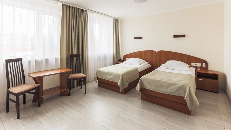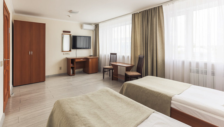 В НОМЕРЕ: Одна двуспальная или две односпальные кровати. Ванная комната. Гардероб. Универсальный стол. Телефон. Телевизор. Мини-холодильник. Wi-Fi. Зеркало. Кресло / Стул