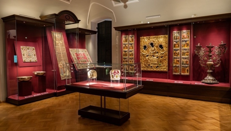 Большинство экспонатов – уникальные произведения, обладающие большой исторической значимостью и художественной ценностью. В основной массе изготовлены они с использованием золота, серебра, драгоценных и поделочных камней, жемчуга.
