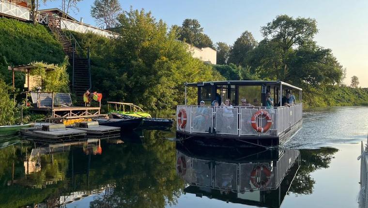 На обратном пути аудиогид завершает рассказ про Шую, и водный трамвайчик идет в тишине или под негромкую музыку из динамиков, пока туристы соотносят услышанную информацию с проплывающими мимо монастырями и фотографируют достопримечательности.