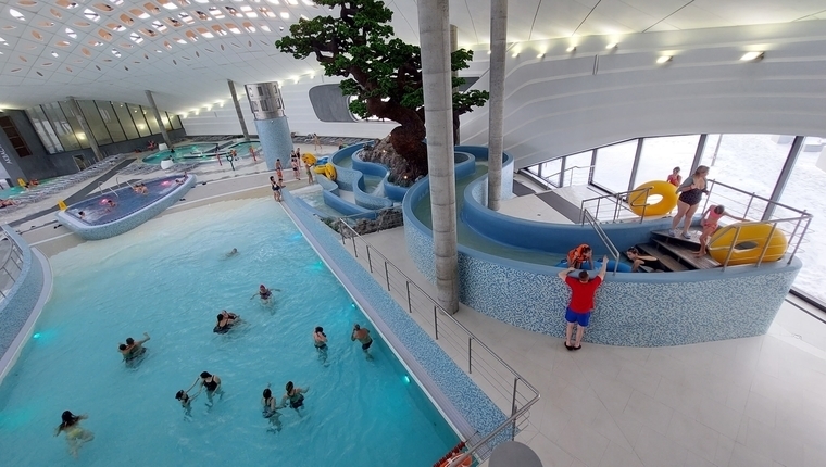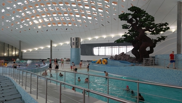 Проект аквапарка выполнен по новейшему европейскому стандарту. Водоподготовка и оборудование выполнены по последнему слову техники. Особенно отчётливо это проявляется в плане показателей расхода и защиты окружающей среды.