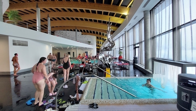 Несмотря на то, что “тело” горок вынесено за стены аквакомплекса, даже в сильные морозы здесь не будет холодно. Зато прозрачные участки, пропускающие солнечные лучи, обеспечат при стремительном движении потрясающе красивые световые эффекты.