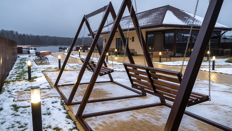 На территории Гостевого дома «Жемчужина» имеется 2 обогреваемых беседки закрытого типа с тонированными окнами. Беседки оборудованы удобными мягкими стульями, столами и магнитофоном. Около беседок имеется мангал. На территории оборудована небольшая парковая зона с качелями для взрослых и детей, а также выход к воде и пирс с ночной иллюминацией.