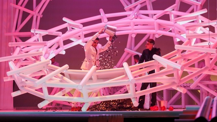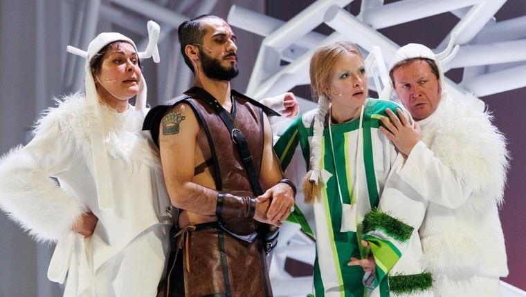 В центре спектакля – тема любви. «Снегурочка» — история про встречу двух влюбленных, про сердца, пылающие огнём сильного и всепобеждающего чувства. И, конечно, горячей, страстной и готовой пойти на жертвы любви, силе жизни и весны противостоят силы зимы — холодная логика, расчет, эмоциональная сухость.